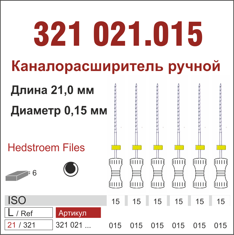 321021.015-инстр. для эндодонтии Н-файл ,6 шт., ДИАСВИСС СА ,Швейцария
